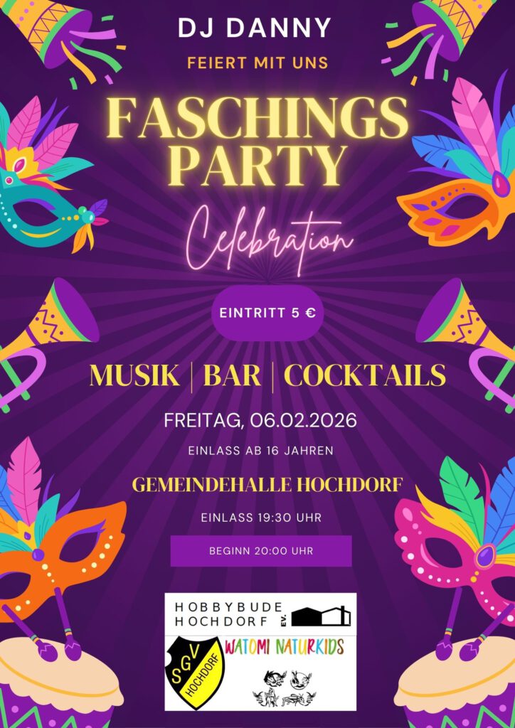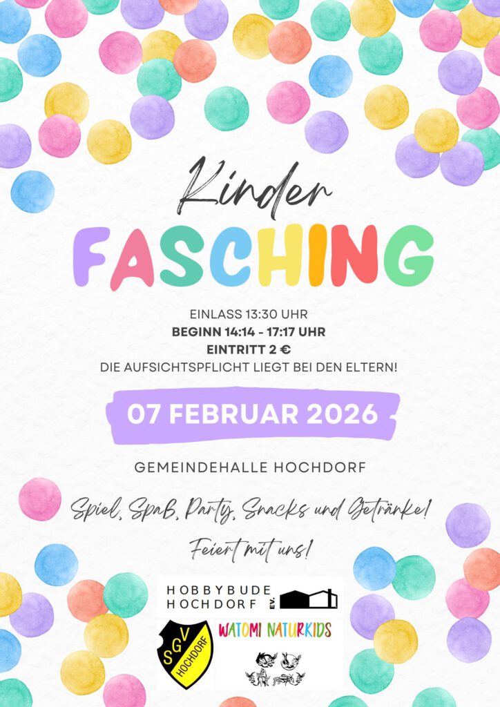 06./07.02.2026: Fasching mit Watomis Naturkids e.V. und der Hobbybude Hochdorf – Gemeinsame Action für Kids und Familien.