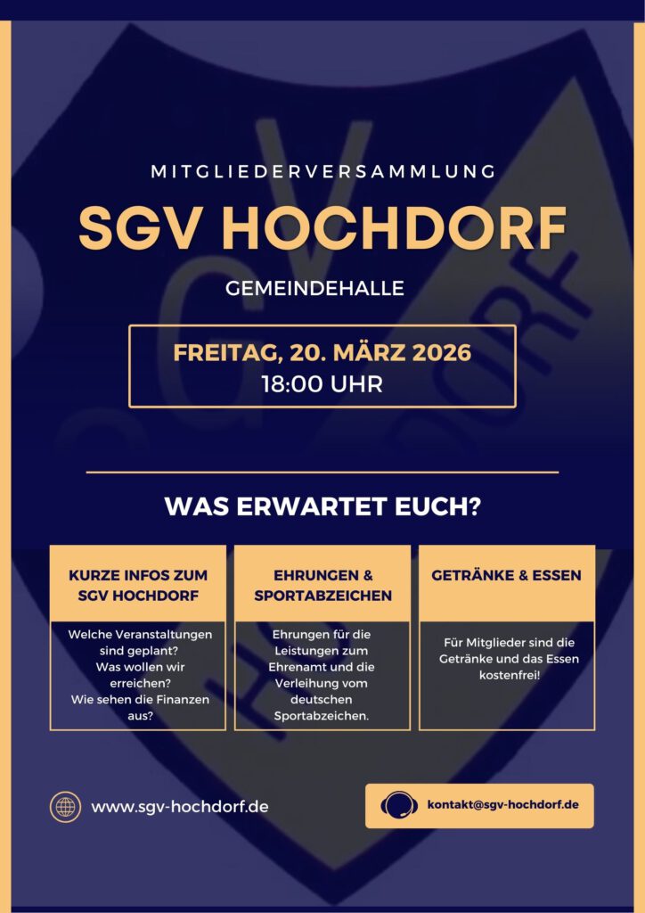Der SGV Hochdorf nutzt den Jahresbeginn, um den Blick auf die kommenden Aktionen und die zukünftige Entwicklung des Vereins zu richten. Unter dem Titel „SGV Hochdorf 2030“ lädt der Verein alle Mitglieder zu einem Zukunftsworkshop ein, bei dem gemeinsam Ideen, Wünsche und Perspektiven für die weitere Entwicklung des SGV erarbeitet werden sollen.